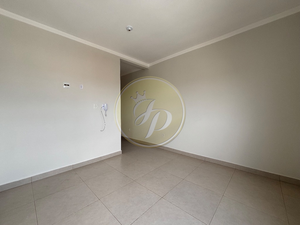 2 quartos, sala de 2 ambientes, cozinha planejada, banheiro social, área de serviço, 1 vaga de garagem.