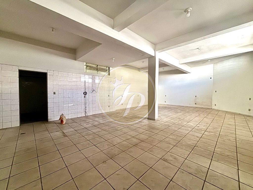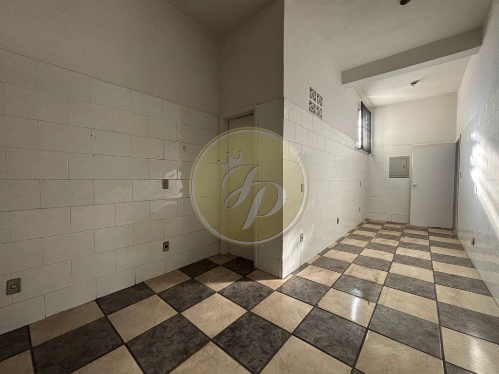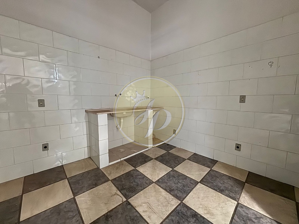 Cômodo amplo, cozinha e lavanderia ao fundo com banheiro social.
