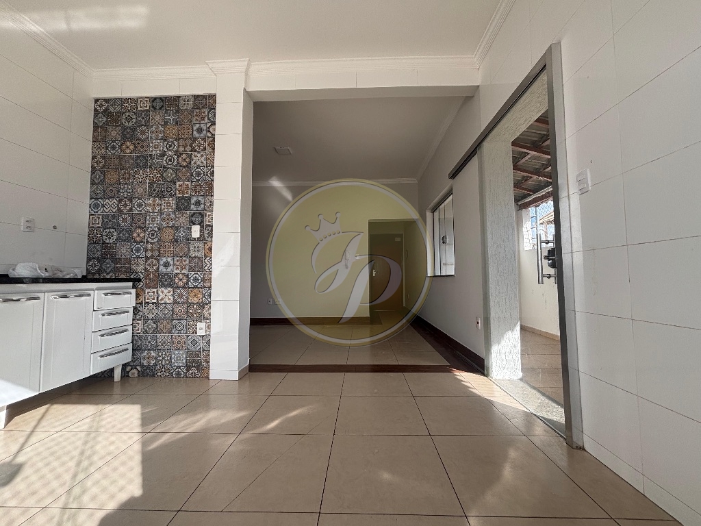2 quartos sendo 1 suíte, sala de estar, cozinha com armário, banheiro social, área de serviço.