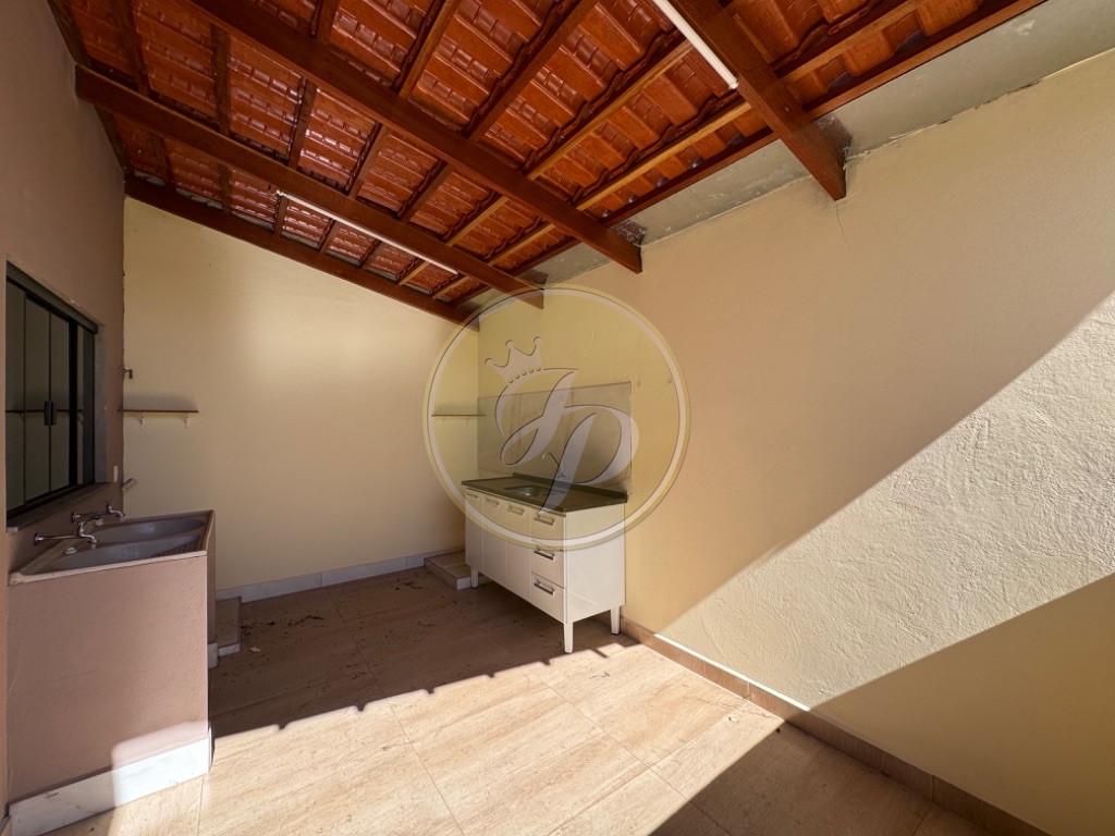 2 quartos, sala, cozinha, banheiro social, área serviço, quintal, varanda com churrasqueira, garagem.