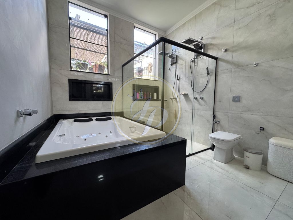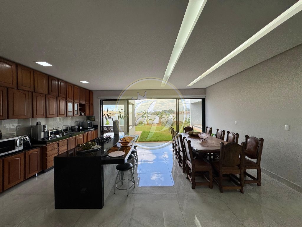 4 quartos sendo 2 suítes com closet (1 suíte com banheira de hidromassagem), sala de visita, sala de jantar, sala de TV, cozinha gourmet planejada com armarios e cooktop na ilha, lavabo, banheiro social, lavanderia coberta, despensa, espaço gourmet com churrasqueira, banheiro externo, e garagem coberta para 2 carros.