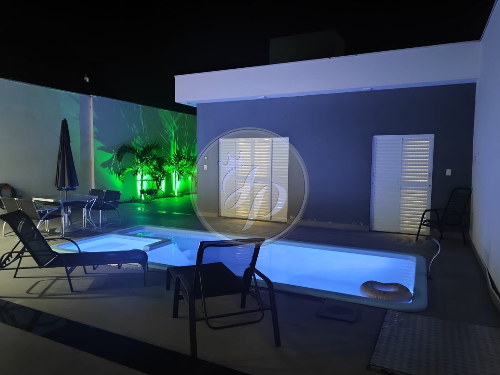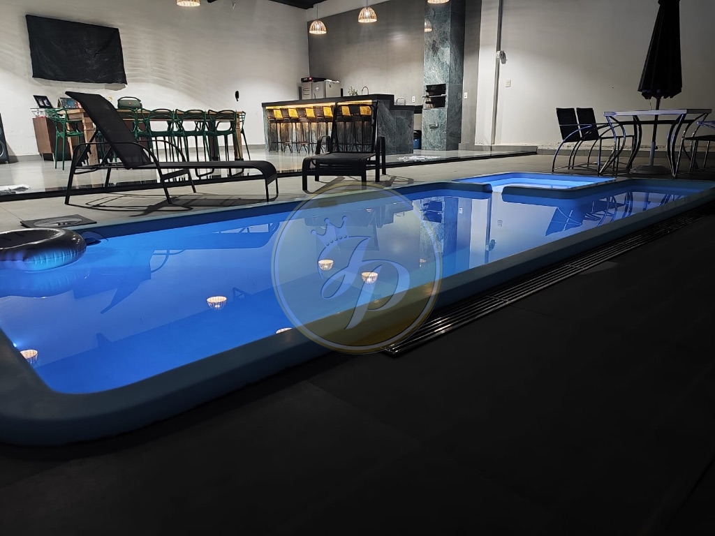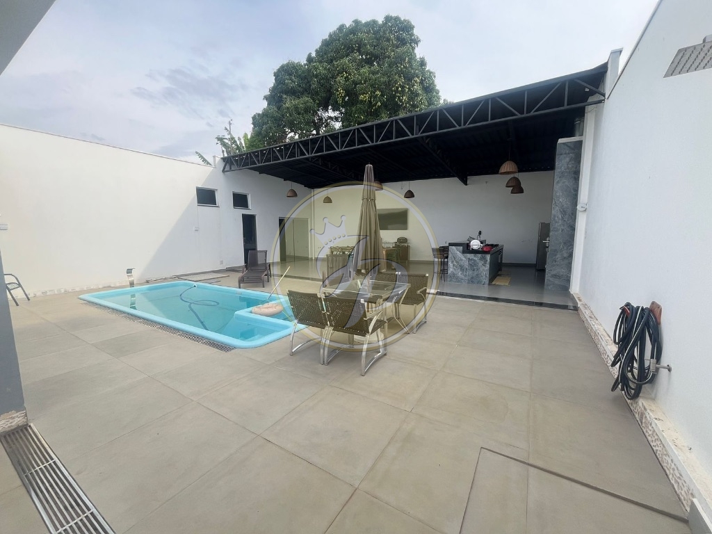 3 quartos sendo 2 suítes (1 com closet),sala TV, sala jantar, cozinha planejada, banheiro social grande, jardim inverno, quintal, piscina de fibra com ofurô, iluminação e cascata, área gourmet grande com churrasqueira, banheiro, lavanderia, garagem 3 carros.