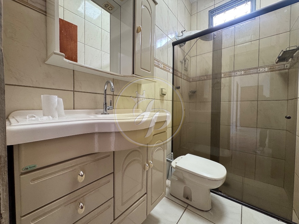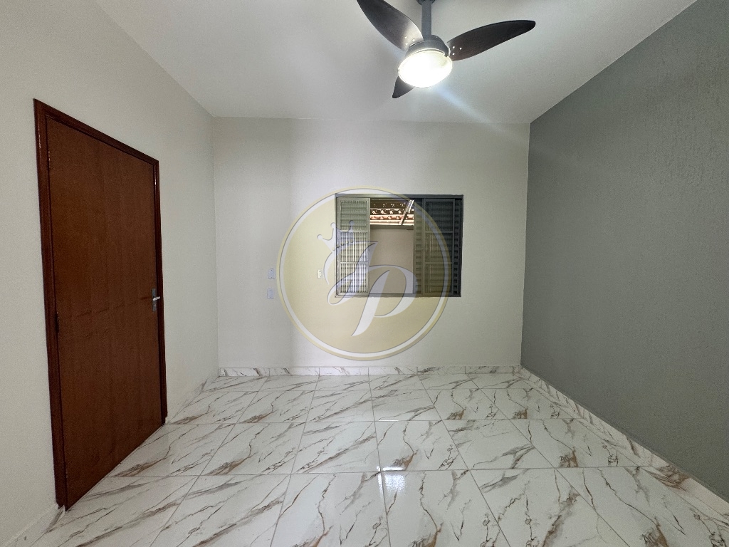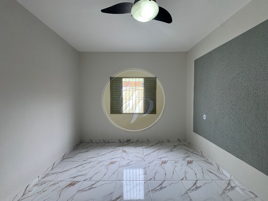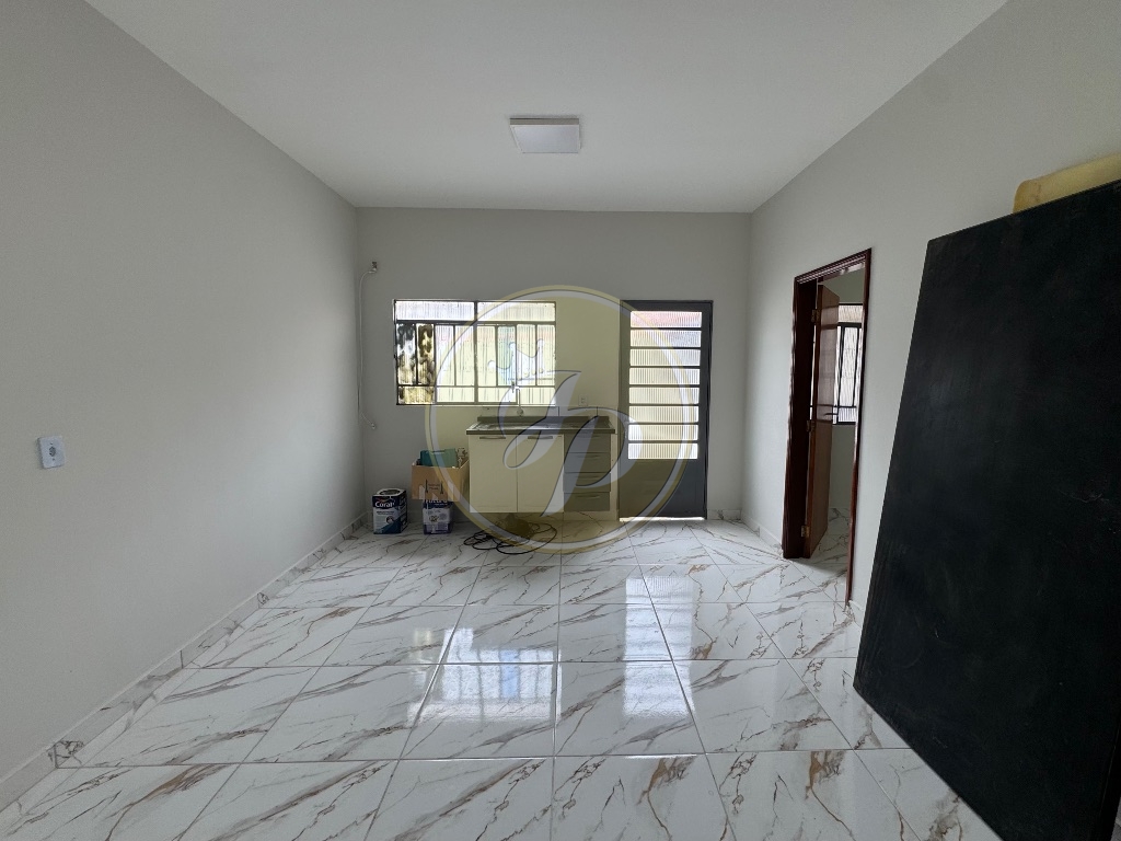 3 quartos, sala de tv, copa/cozinha, banheiro social, lavanderia, varanda, quintal e garagem para 2 carros.