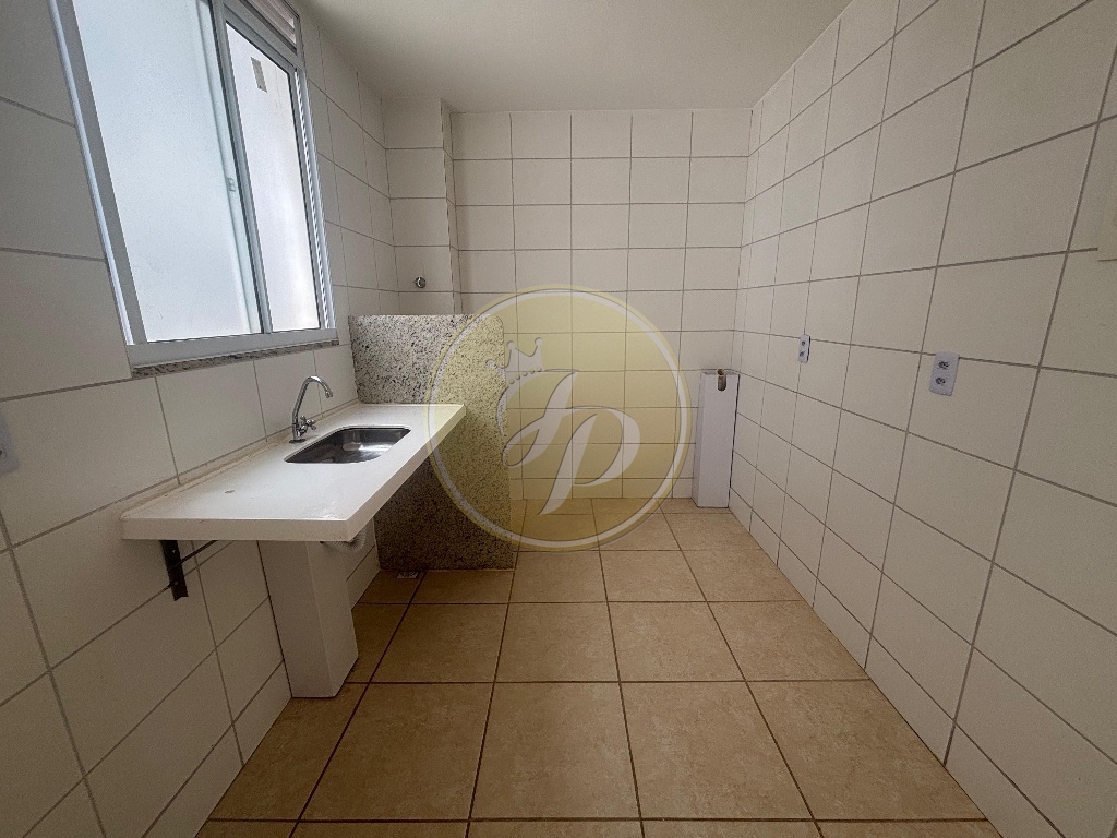 2 quartos, sala de estar, cozinha, banheiro social, área de serviço, vaga de garagem.