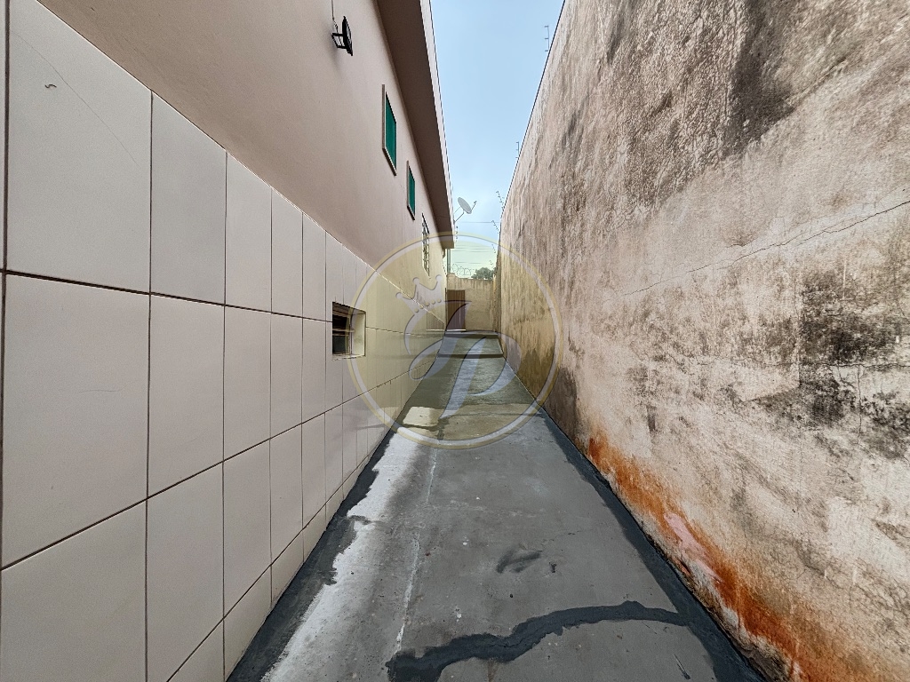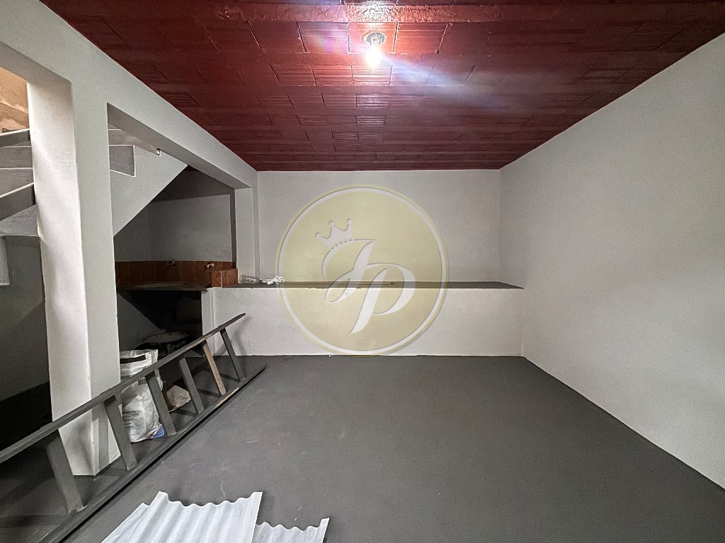 Imóvel com 3 quartos grandes, sendo 1 suíte, sala, cozinha e 2 banheiros sociais. Na parte inferior, dois cômodos, sendo um deles com banheiro. Possui quintal amplo, com área cimentada e parte em terra.