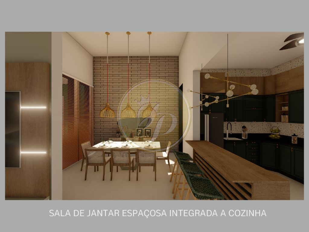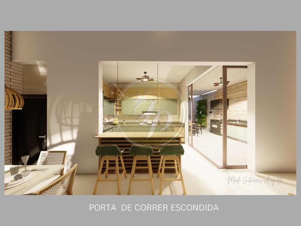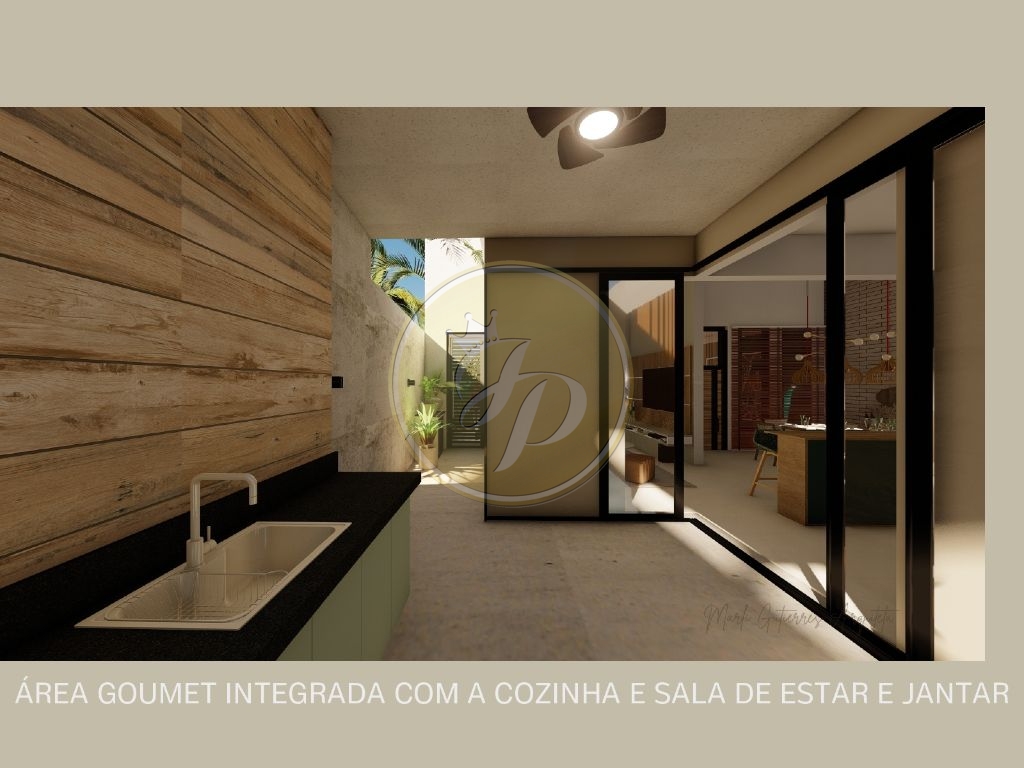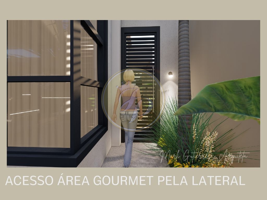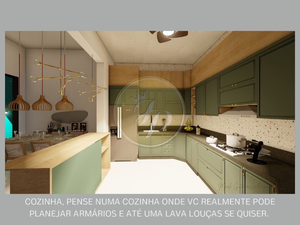 Sendo 3 suítes, sala de estar, copa e cozinha integradas, banheiro social, área de serviço e garagem para 3 carros. Conta ainda com área gourmet.