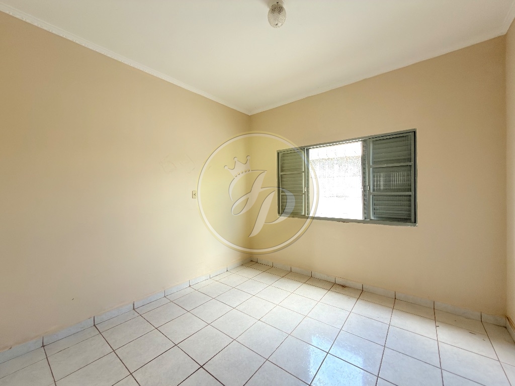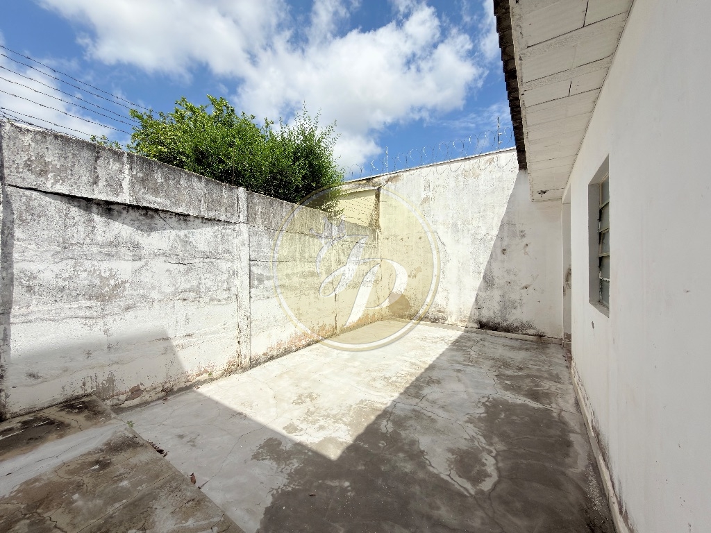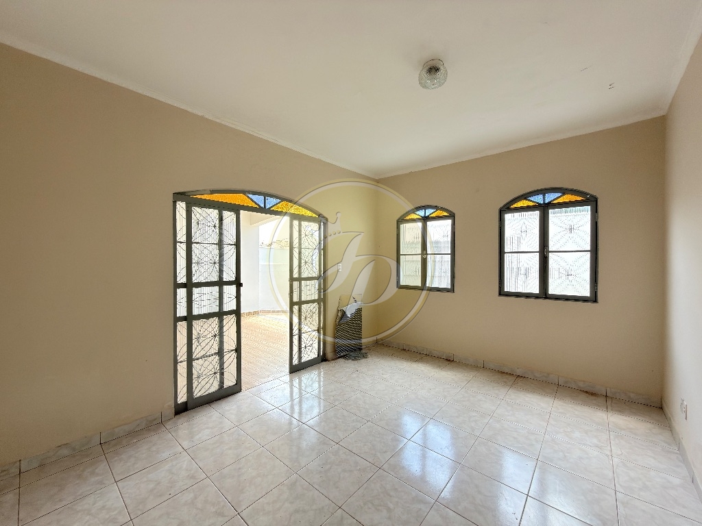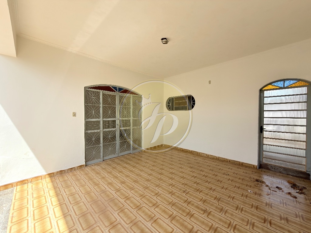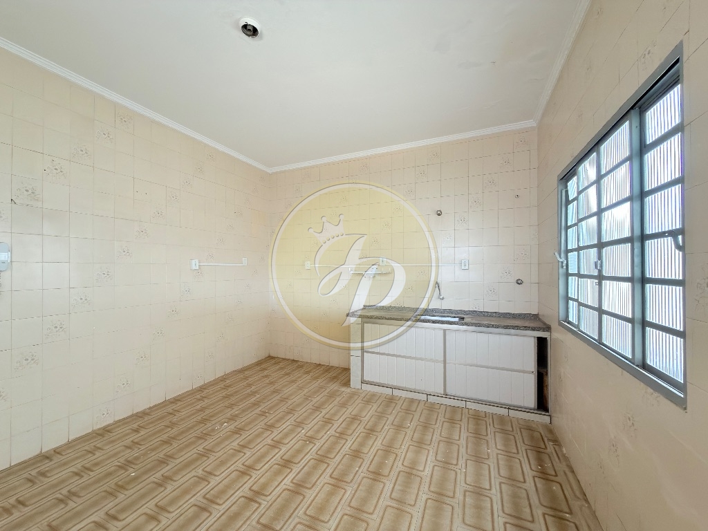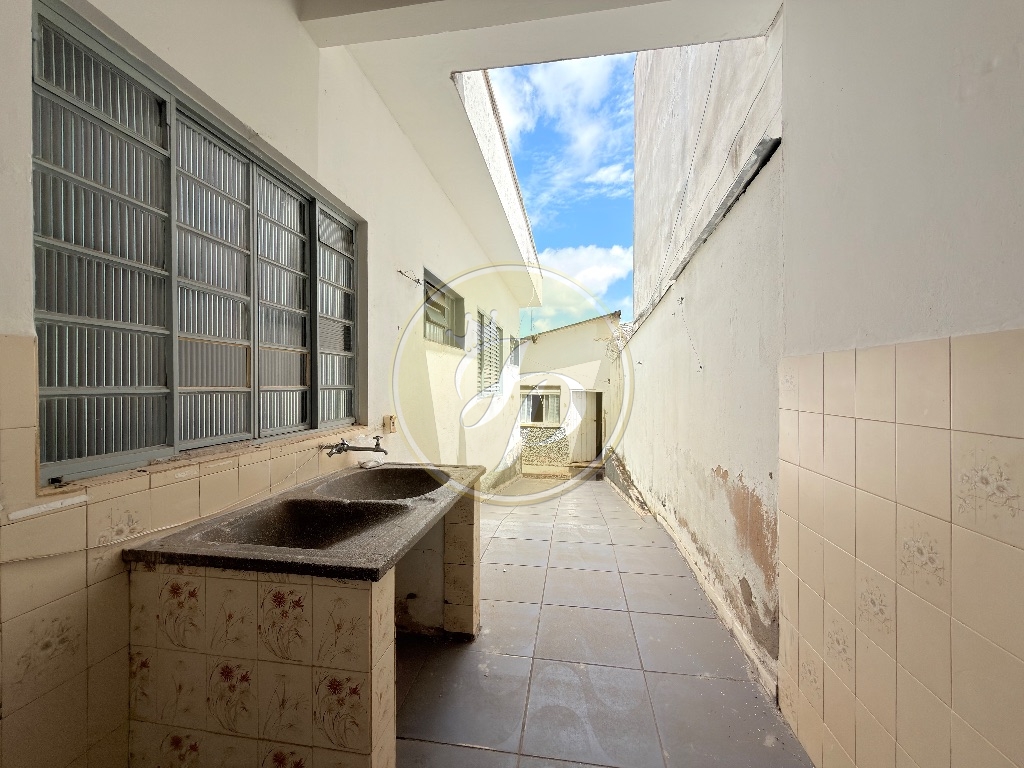 3 quartos, sala de estar, sala de jantar, cozinha com armários, banheiro social, área de serviço, casa de fundos, quintal, garagem coberta.
