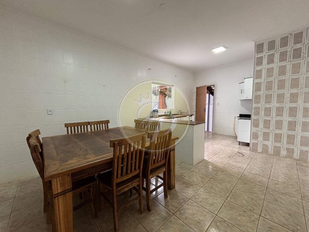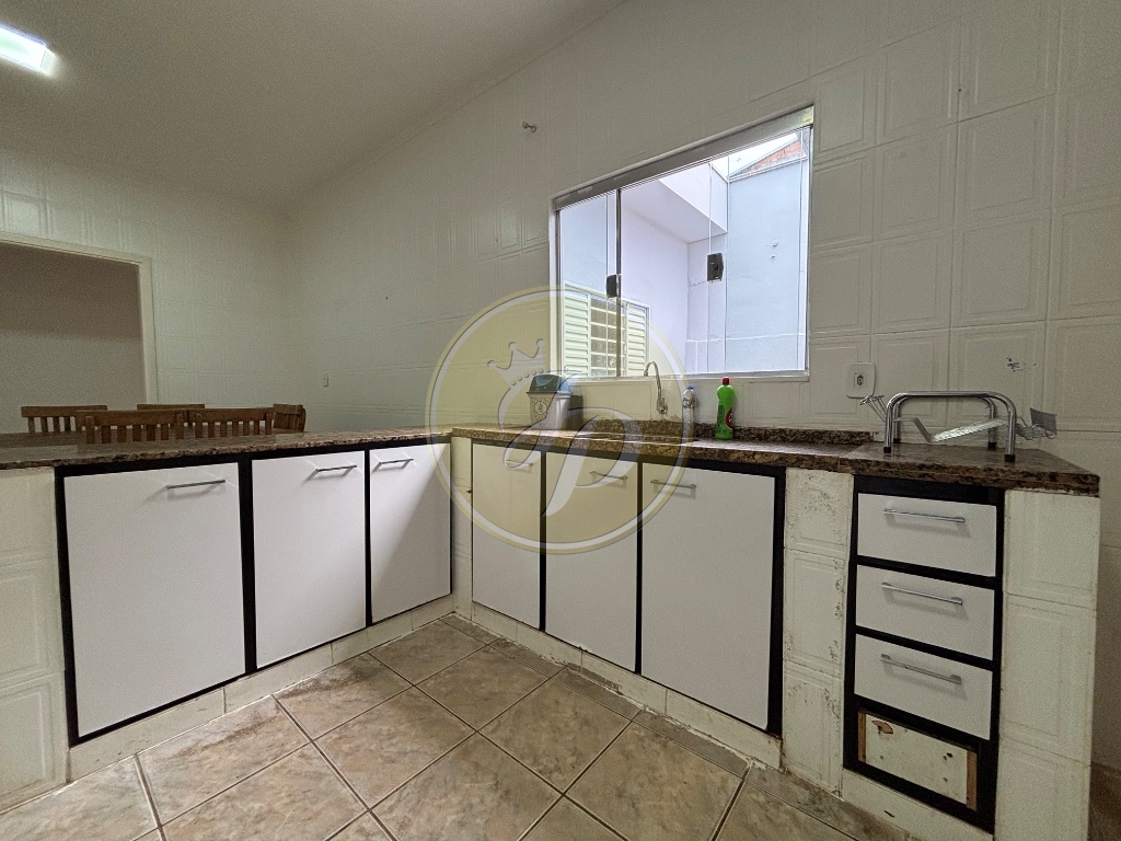 Casa para aluguel com 4 quartos (sendo 1 suíte), sala, copa, cozinha com armários, 1 banheiro social, área de lavanderia e quintal amplo com churrasqueira.