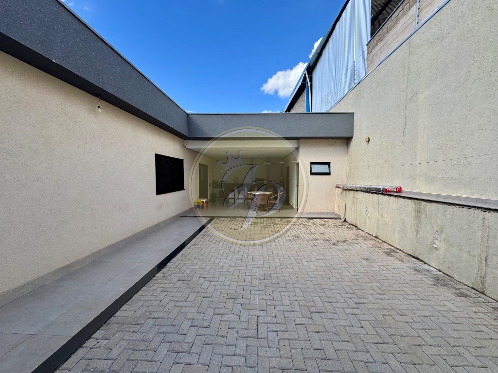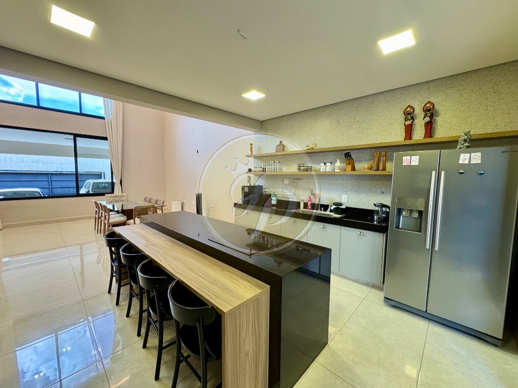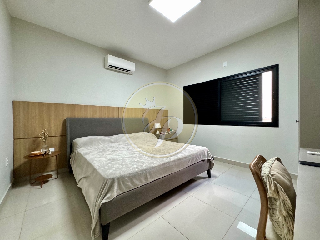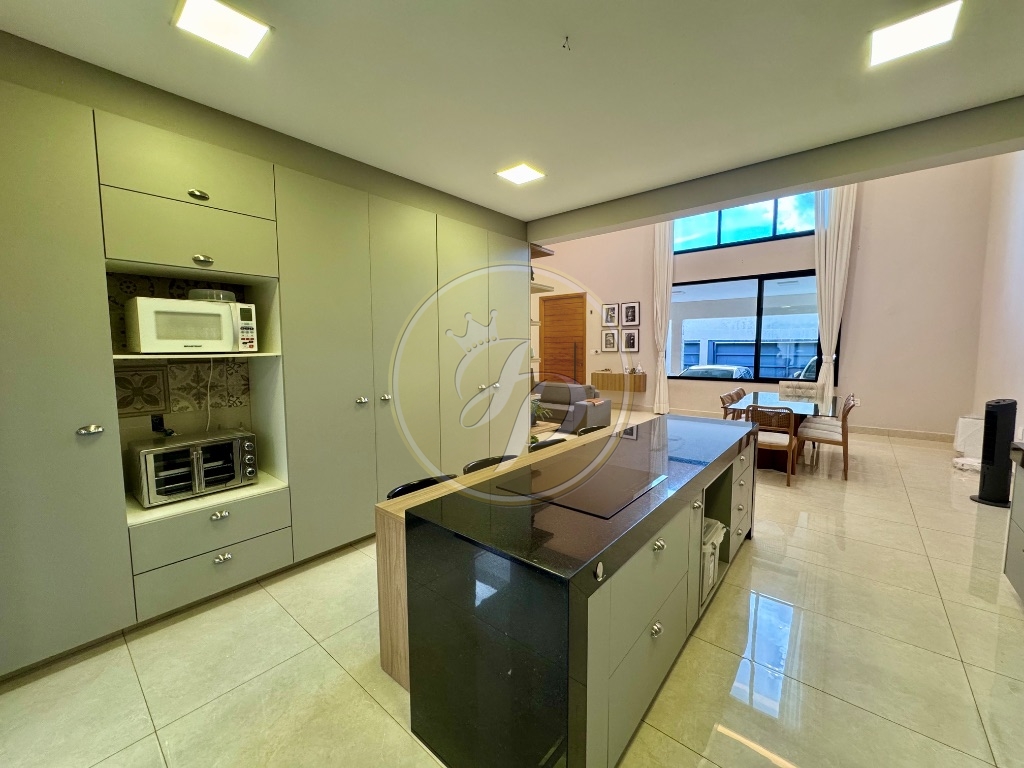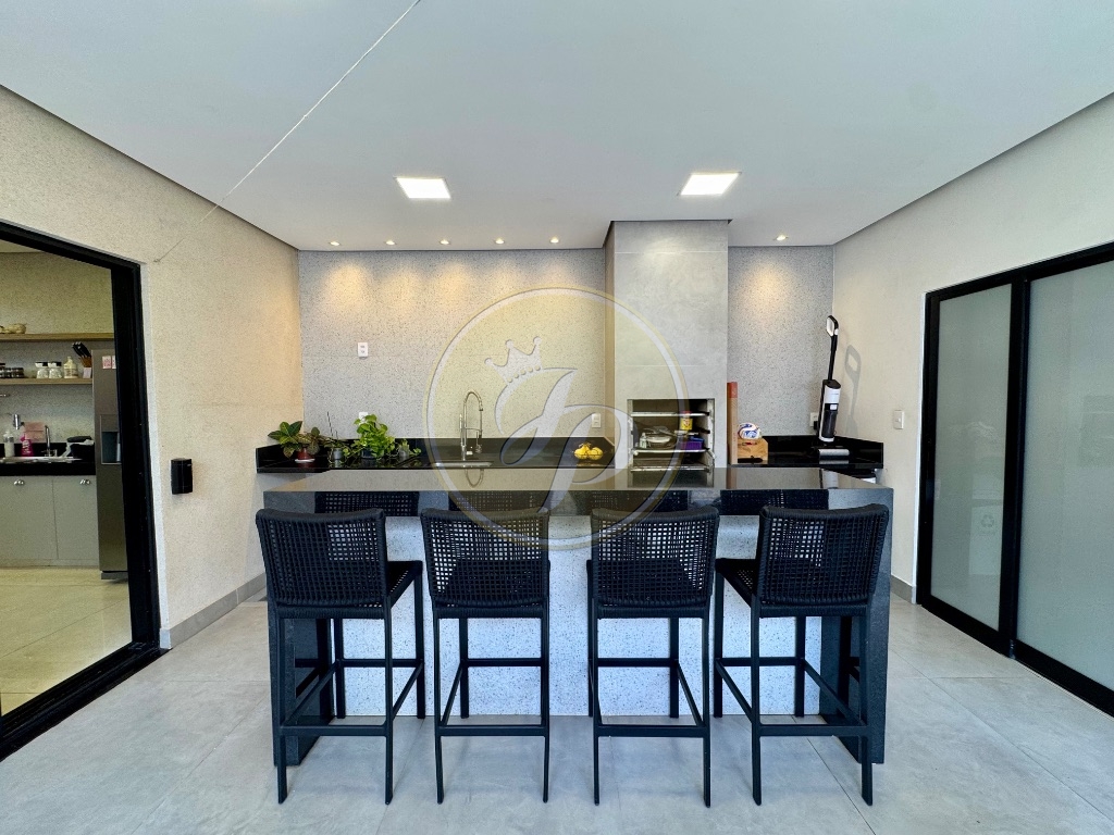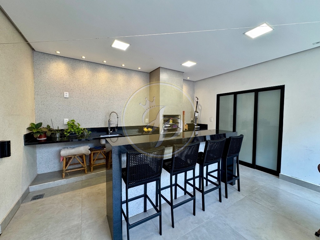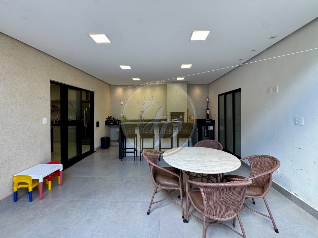 3 quartos sendo 2 suítes (todos com armários e 1 suíte com closet), sala 2 ambientes com painel de TV, cozinha planejada, banheiro social, lavanderia, espaço gourmet com churrasqueira, banheiro, quintal, e garagem para 2 carros.