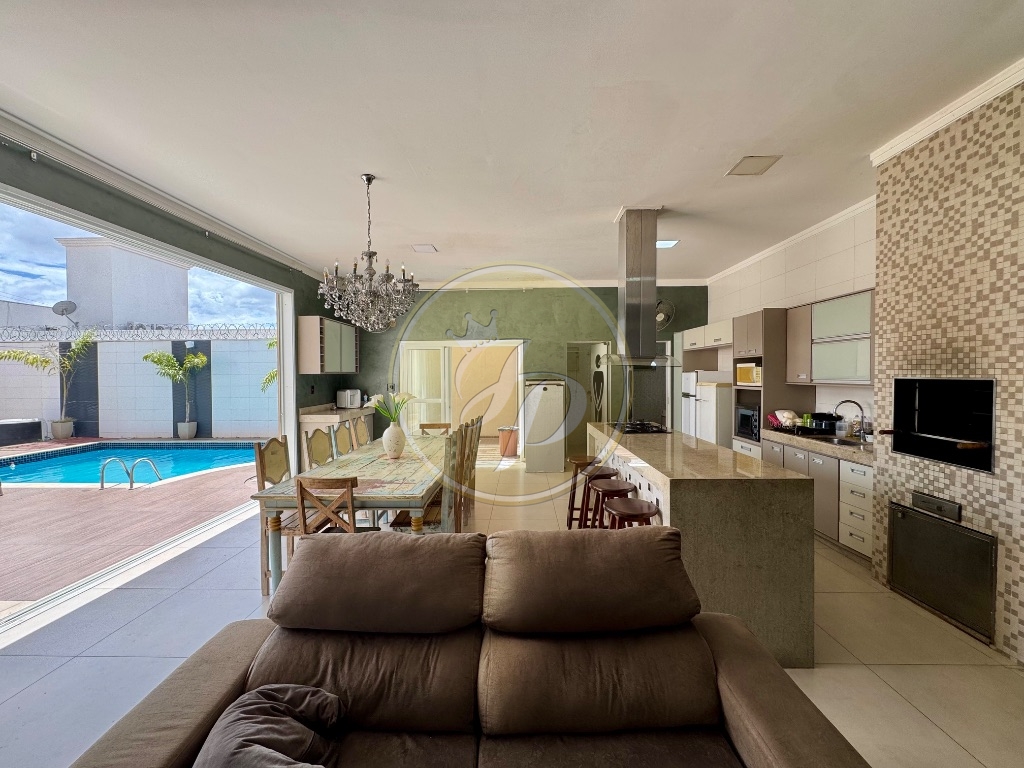 Sala, cozinha planejada, banheiro social, piscina aquecida com cascata e hidromassagem, garagem para varios carros.