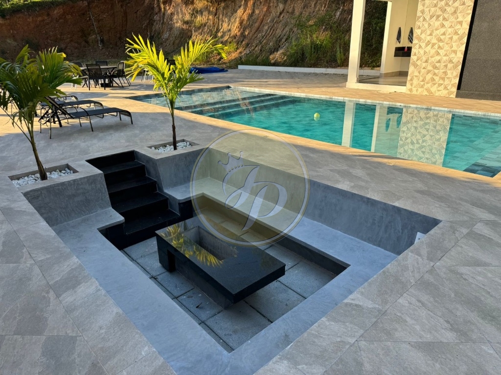 Na área externa, o imóvel se destaca pela estrutura de lazer completa: espaço gourmet equipado, piscina com hidromassagem, quiosque, lareira externa, além de uma suíte externa com 2 lavabos, ideal para receber visitantes com total privacidade. Um rooftop complementa o espaço, oferecendo um ambiente privilegiado para contemplação e descanso. À entrada principal, quiosque de 50m².