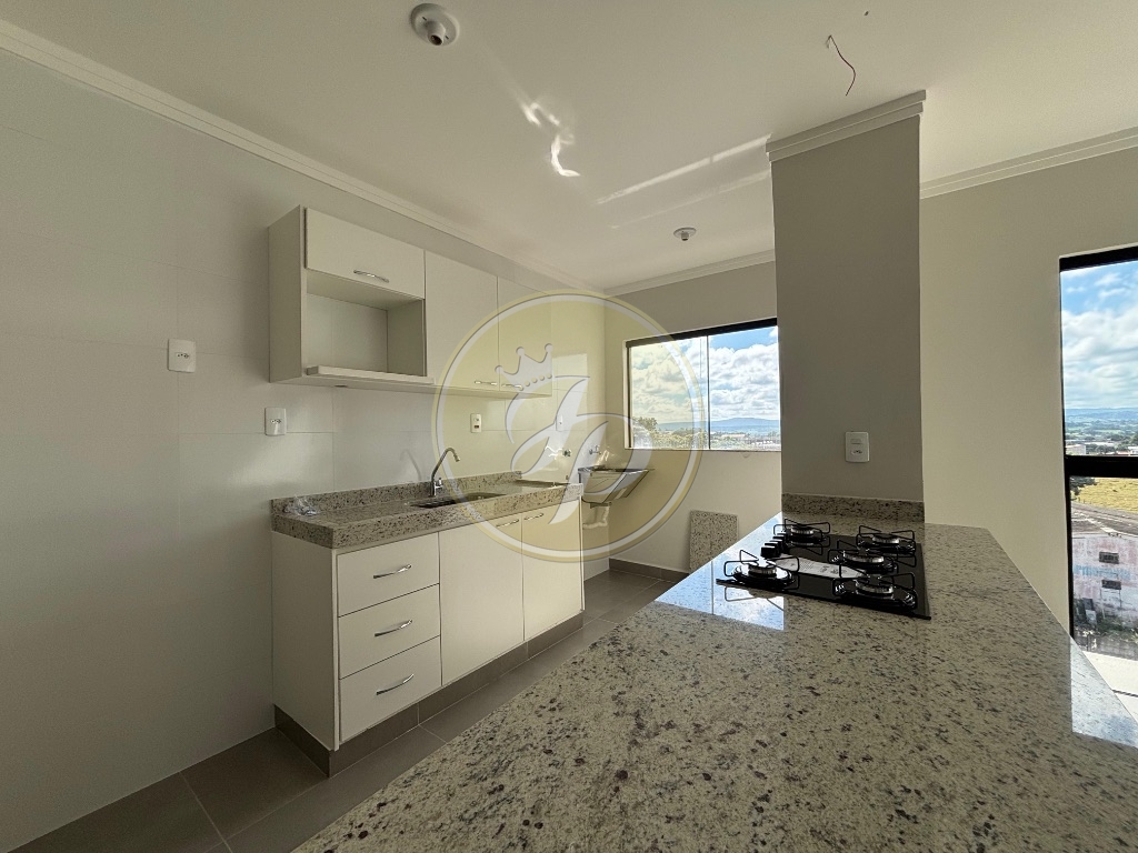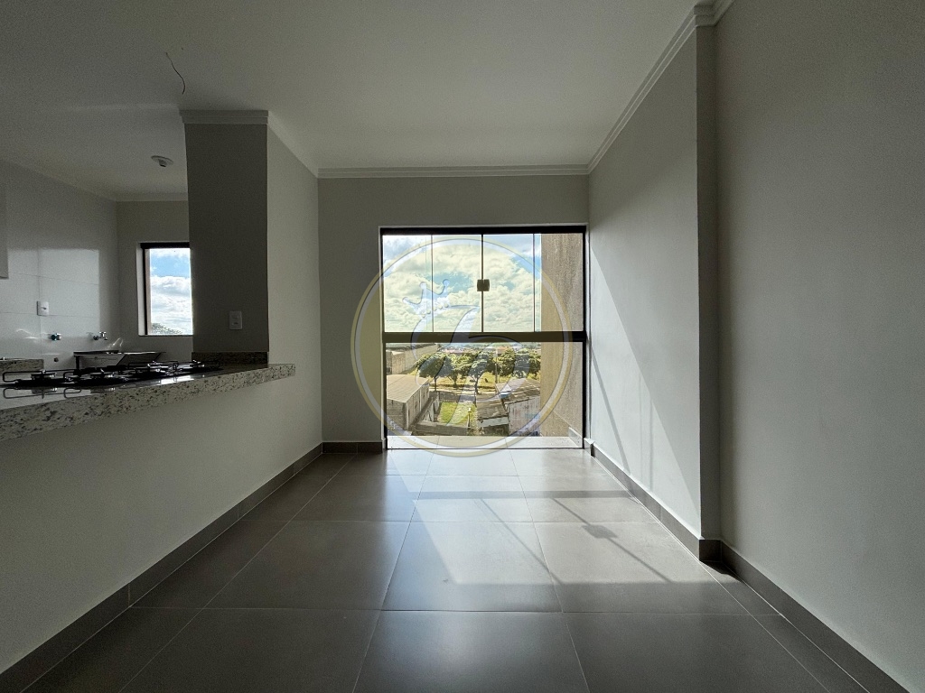 2 quartos, sala de 2 ambientes com sacada, cozinha planejada com cooktop, banheiro social, área de serviço, 2 vagas de garagem.