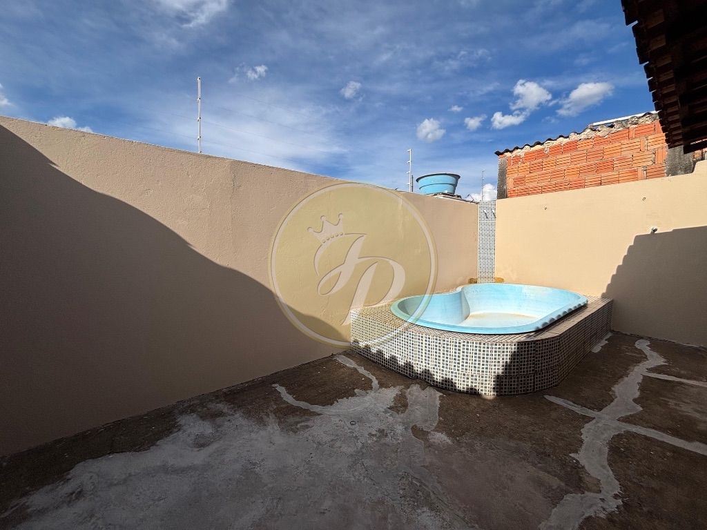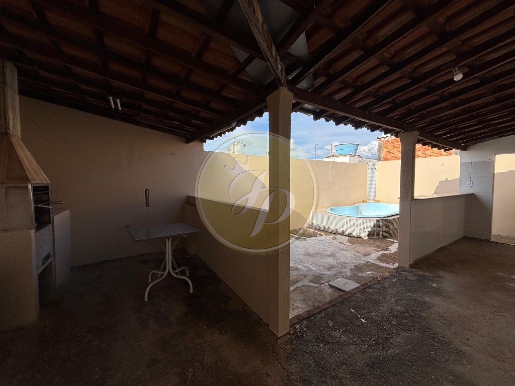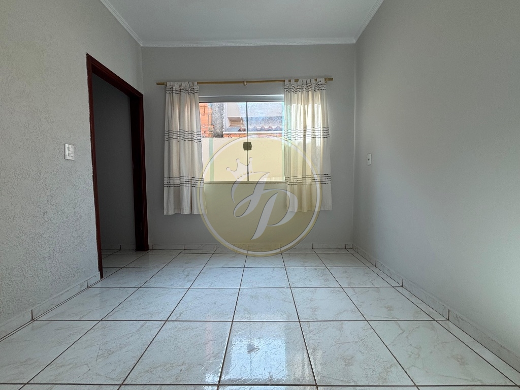 2 quartos sendo 1 com guarda-roupa e cama e 1 com guarda-roupa, sala de estar, sala de jantar, cozinha com armários, banheiro social, quintal amplo com piscina, área gourmet coberta com churrasqueira, garagem coberta.