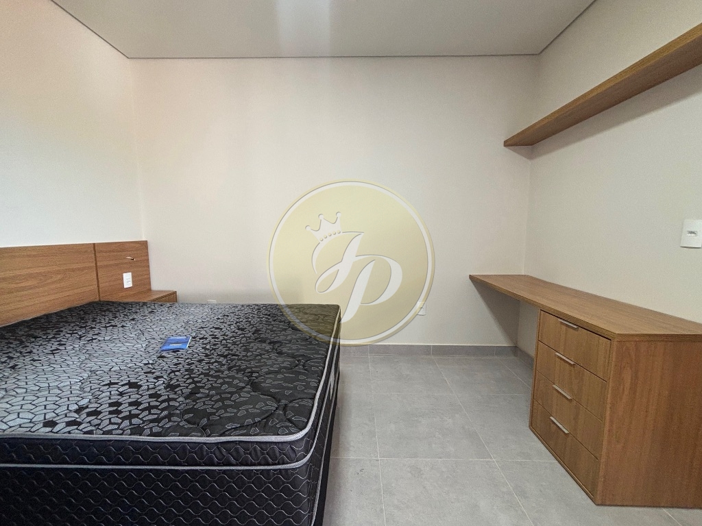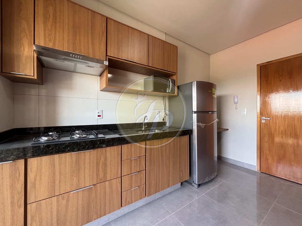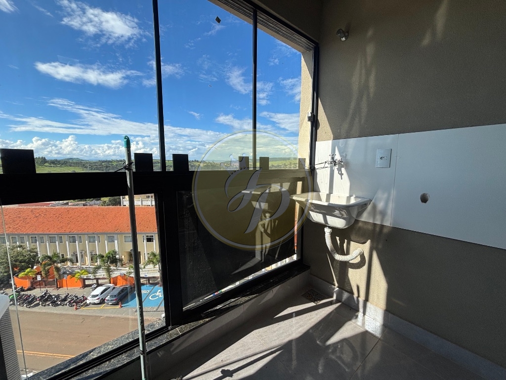 Studio planejado e mobiliado com separação entre quarto e cozinha com sacada, banheiro social e área de serviço. Equipado com armários planejados, escrivaninha, cooktop, coifa, geladeira, microondas, e chuveiro. Possui vaga de garagem.