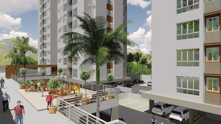 O condomínio terá como área comum no pavimento térreo, uma guarita com banheiro, lavabo PNE, depósito de lixo 1 e 2, depósito de gás, casa de máquinas, salão 1 com dois banheiros, salão 2 com 2 banheiros, área comum e playground.